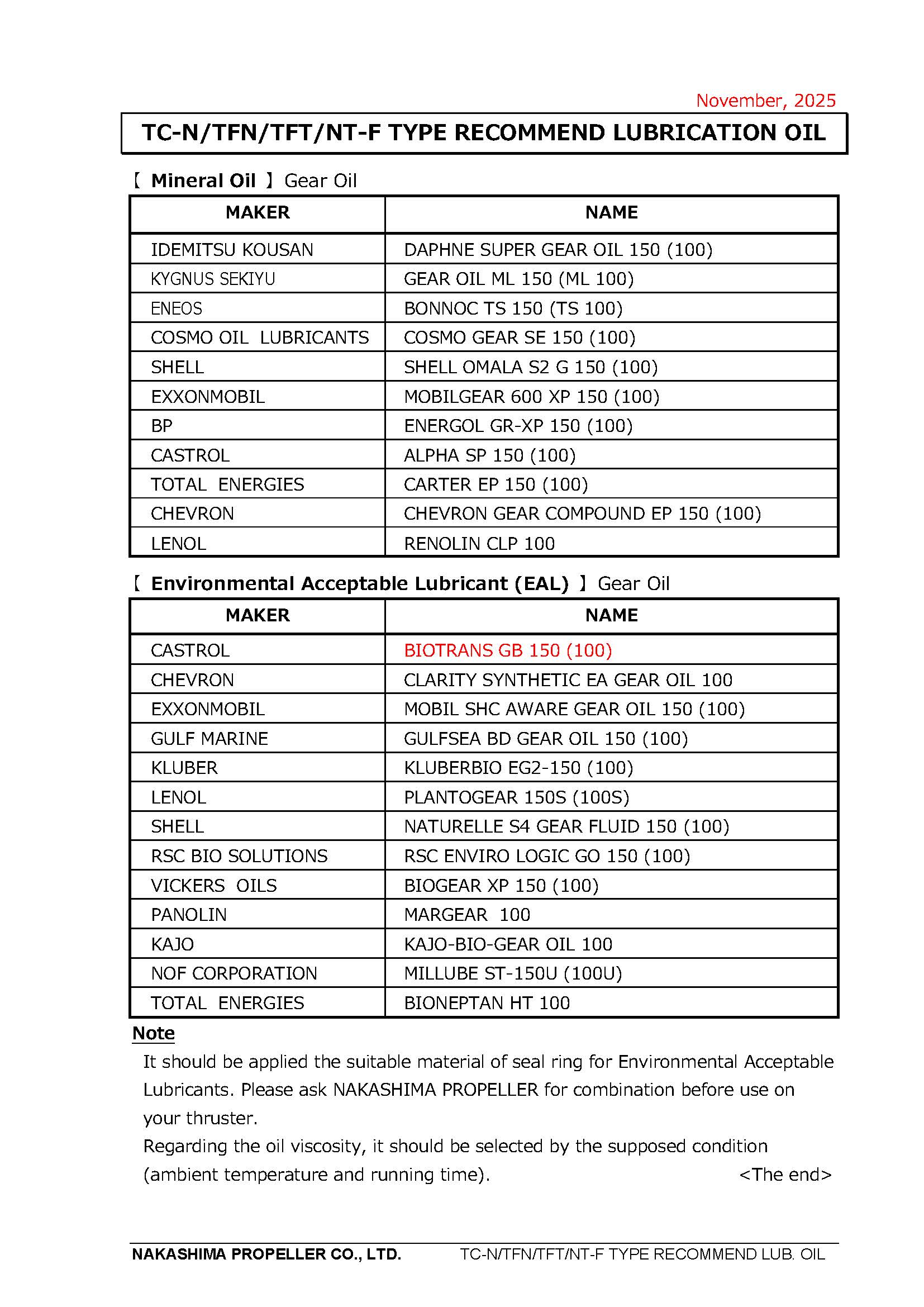 According to the 2013 VGP, Nakashima Propeller shall implement “technically infeasible letter” with a use of EAL to be applied to Thruster. In addition, we shall advise to apply EALs in the vessel’s next dry docking.