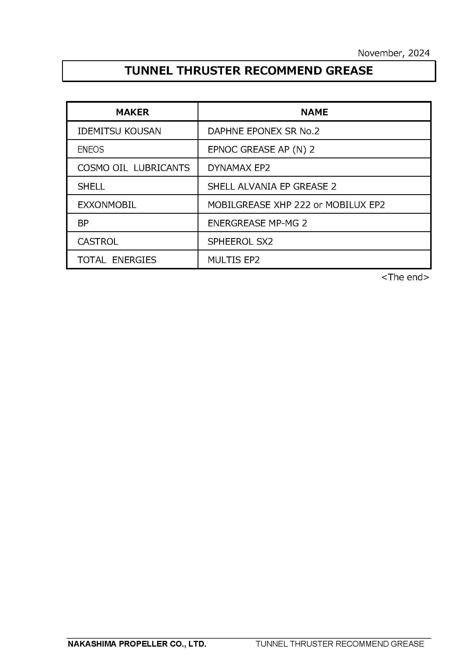For your information, 2013 VGP applies to the protective seals on controllable pitch propellers, azimuth thrusters, propulsion pods, rudder bearings, or any other oil-to-sea interfaces. However, our Fixed Pitch Propeller Cap has a possibility to be recommended using the EAL in consideration of current situation. Our technical action is as follows.