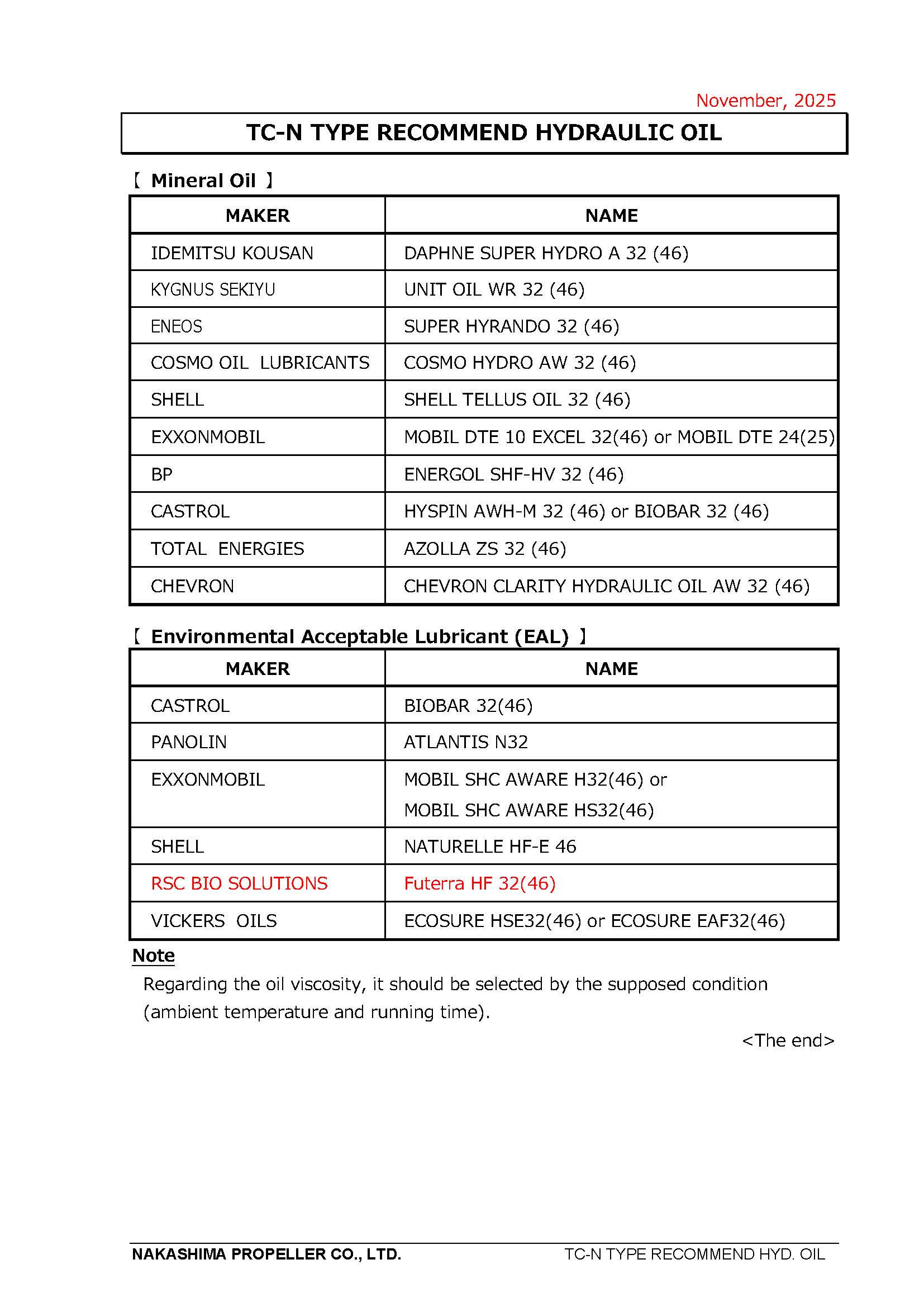 HYDRAULIC OIL