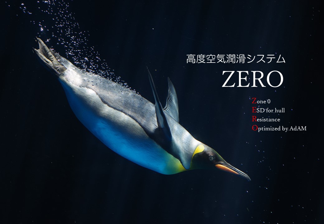 Developed jointly with the National Maritime Research Institute (NMRI) of the National Institute of Maritime, Port and Aviation Technology, ZERO (Zone 0 ESD for hull Resistance Optimized by AdAM) is an innovative air lubrication system that intermittently releases air from blowers through outlets on the bottom of the hull.