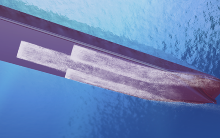 This creates a layer of bubbles along the hull surface, reducing the frictional resistance between the hull and seawater.