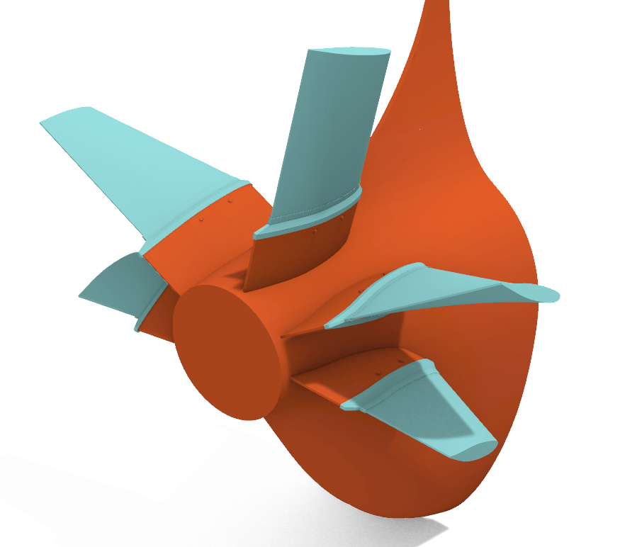 The Composite Stator, jointly developed by Nakashima Propeller and Fluid Techno, utilizes GFRP (Glass Fiber Reinforced Plastic) material. Leveraging the properties of GFRP, the cross-sectional profile and angle of attack of each stator blade can be adjusted to achieve an optimal shape. Additionally, steel boots allow for easy installation onto the hull. (Joint patent obtained)