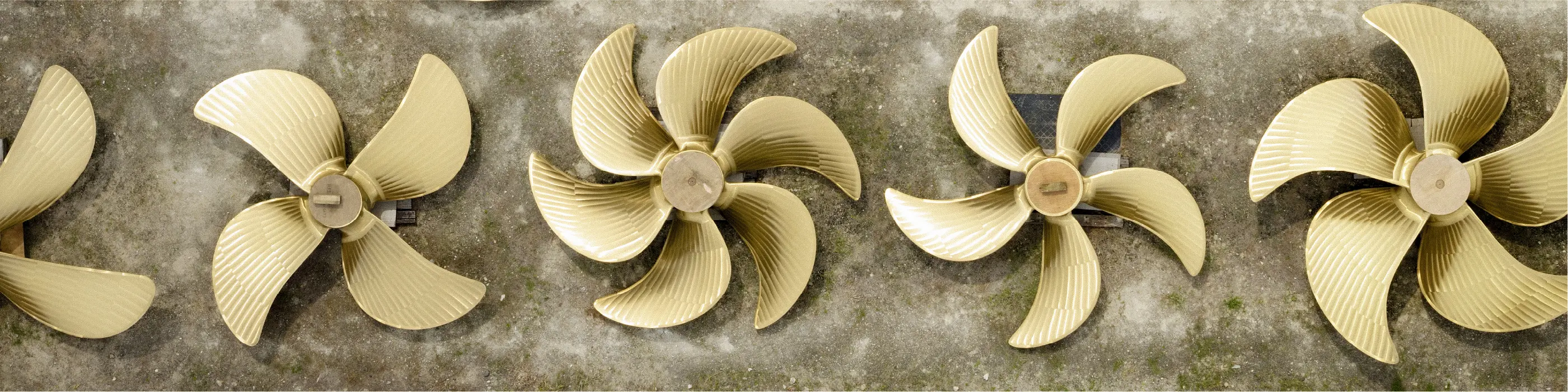 There are many types of vessels—tankers, container ships, passenger ships, fishing boats, and pleasure craft. Depending on the engine type and sailing routes, the required shape of the propeller also varies.